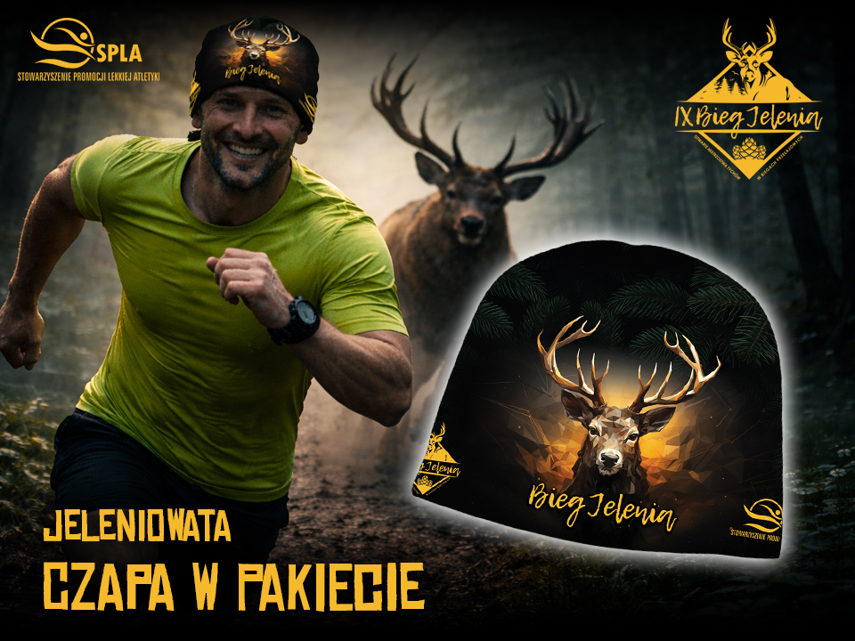 Wlatuje pierwsza leśna niespodziajka 💣🎁 prosto z lasu 🌲🌳🌲 – do każdego pakietu na IX Bieg Jelenia dorzucamy jeleniowatą czapę 🦌💂‍♀️🤩 – ideollo na leśne treningi w zimniejsze poranki i wieczory 🍂 – a i w jesienno-zimowy 💨❄️ okres docenią ją Wasze uczy, ponieważ czapa będzie delikatnie ocieplana ! Komfort i ciepełko w lesie to podstawa – jak rzecze nasz etatowy Jeleń! 🥸