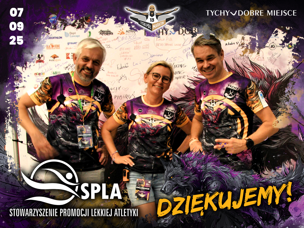 No i na koniec MY – ekipa SPLA Tychy – Asia, Damian, Michał i Kazik (którego jak zwykle nie widać, bo lata gdzieś i coś załatwia 😎). Zamykamy właśnie 13 rozdział naszego półmaratońskiej historii!